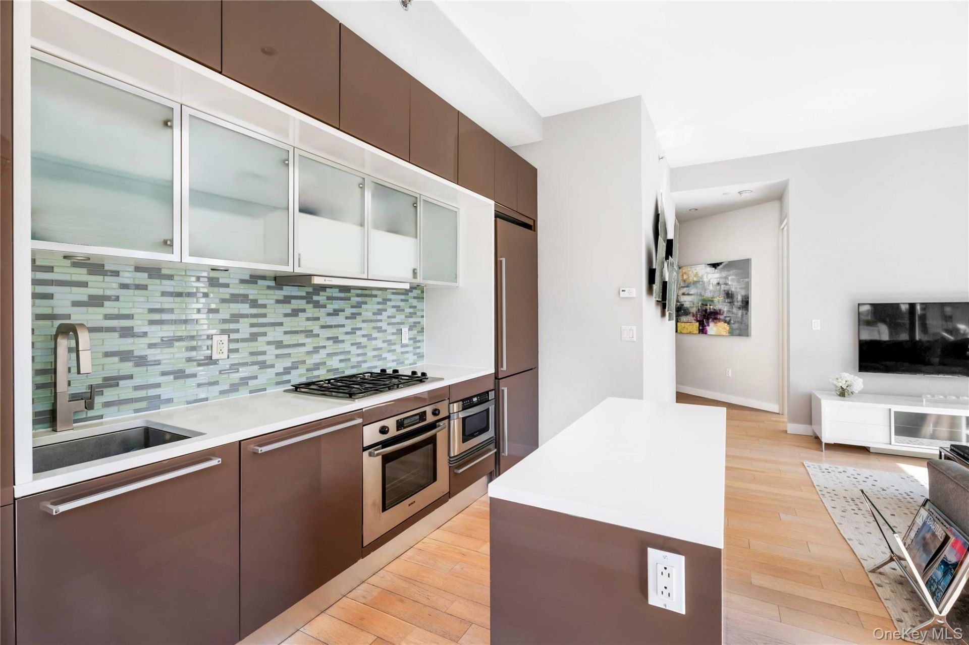 A bright and thoughtfully designed one-bedroom plus home office with two full bathrooms, spanning approximately 1,011 square feet. This luxury condominium residence features south and west-facing windows that bring in abundant natural light. This luxury unit is in the very desirable F line, offering fantastic views. High ceilings and wide-plank oak flooring enhance the airy, modern feel, while motorized shades, individual climate control, an in-residence washer and dryer, and ample storage add comfort and convenience.The open living and dining area is well-proportioned and ideal for both relaxing and entertaining. The chef's kitchen is finished with Caesarstone countertops, glass tile backsplash, sleek lacquer cabinetry, and premium appliances including a Liebherr refrigerator, Miele dishwasher, and Bosch oven and cooktop.The primary bedroom features a large window with open city views and a comfortable, private layout, complemented by a generously sized closet. Two full bathrooms are finished with marble walls and floors, modern vanities, and refined fixtures. The primary bath includes a double vanity and deep soaking tub, while the second bathroom features a glass-enclosed shower.75 Wall Street is a full-service luxury condominium offering 24-hour doorman and concierge, live-in superintendent, fitness center, resident lounge/media room, landscaped roof deck with sweeping downtown views, and bike storage, along with additional storage options available. Ideally located in the Financial District near transportation, the waterfront, dining, and shopping, this home offers modern design and full-service condominium living.