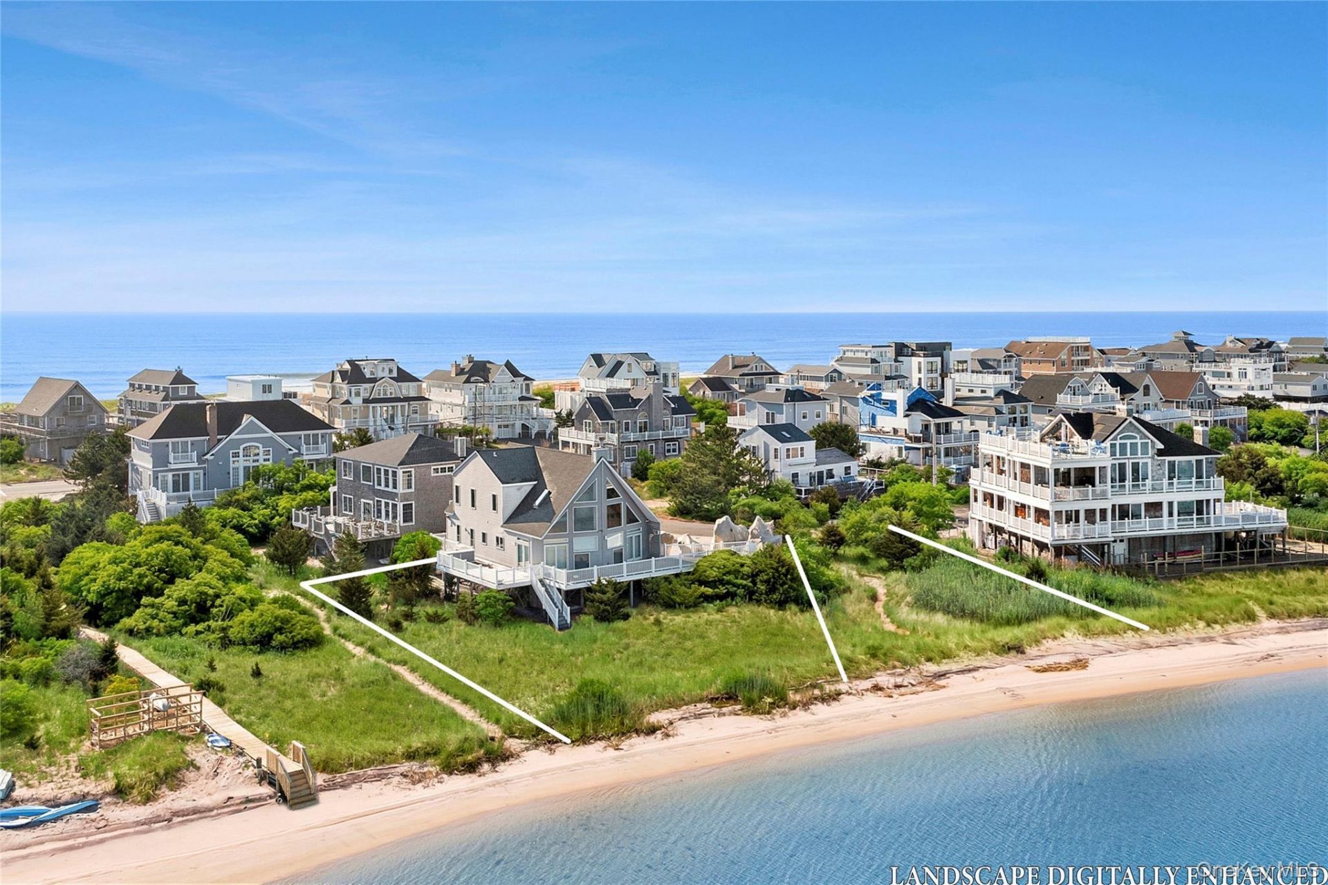 A rare opportunity to own a charming bayfront home and the adjoining vacant lot tucked just off iconic Dune Road in Westhampton Dunes. This exceptional offering includes two single and separate properties, presenting endless possibilities for personal use, expansion, or future development. Flooded with natural light, the home maximizes its breathtaking surroundings, featuring an open floor plan, a dramatic double-height cedar ceiling, a spiral staircase, and a spacious living room with a fireplace that flows seamlessly into the kitchen and dining areas. Continue outside to a large wraparound deck and take in panoramic bay views, perfect for sunsets, entertaining, or quiet coastal mornings, with the added convenience of an outdoor shower for after-beach living. With easy access to the ocean beach just across the street, this property delivers the best of bayfront serenity and oceanfront living. Whether envisioned as a private retreat or a long-term investment in one of the Hamptons' most coveted locations, this is a truly exceptional opportunity.
